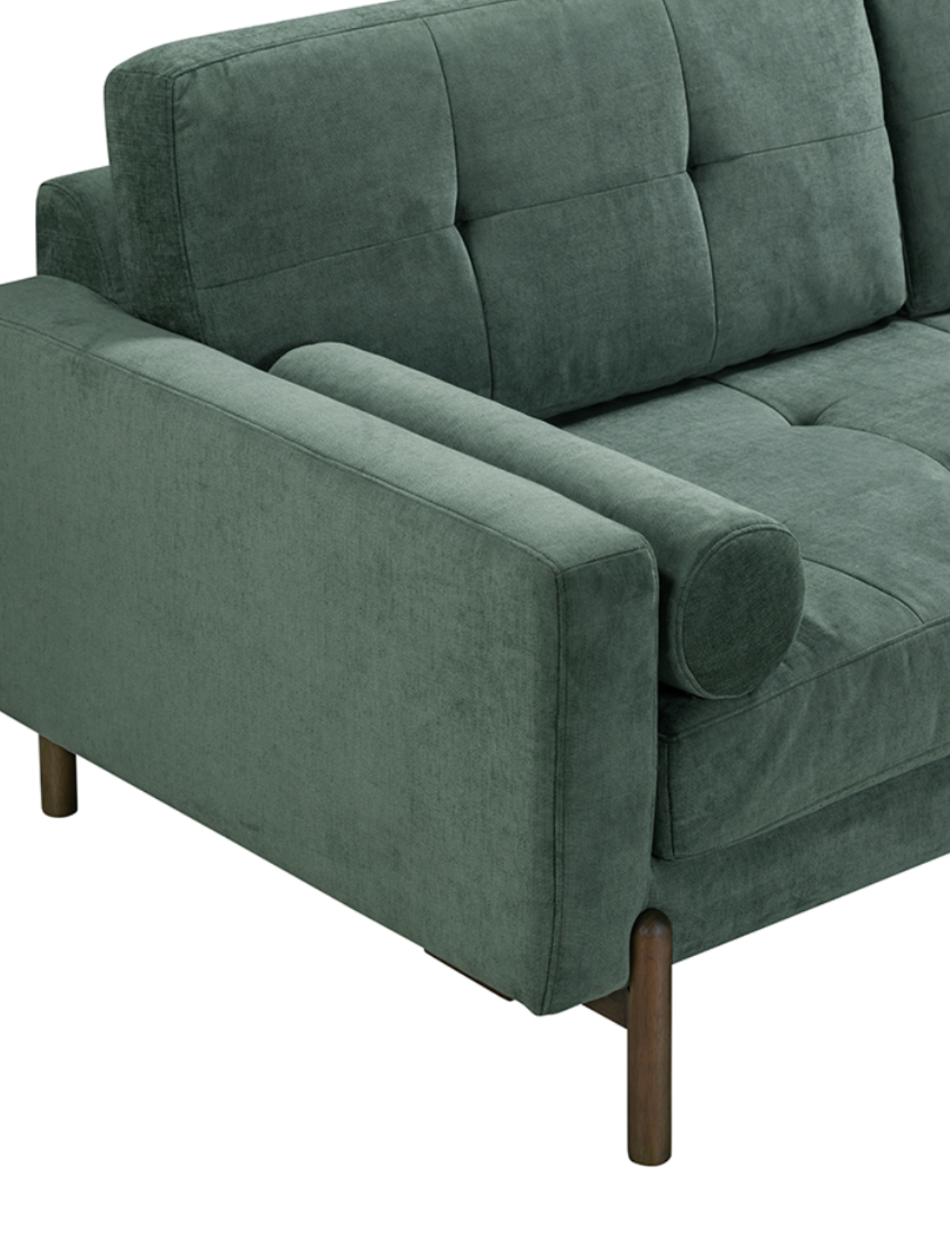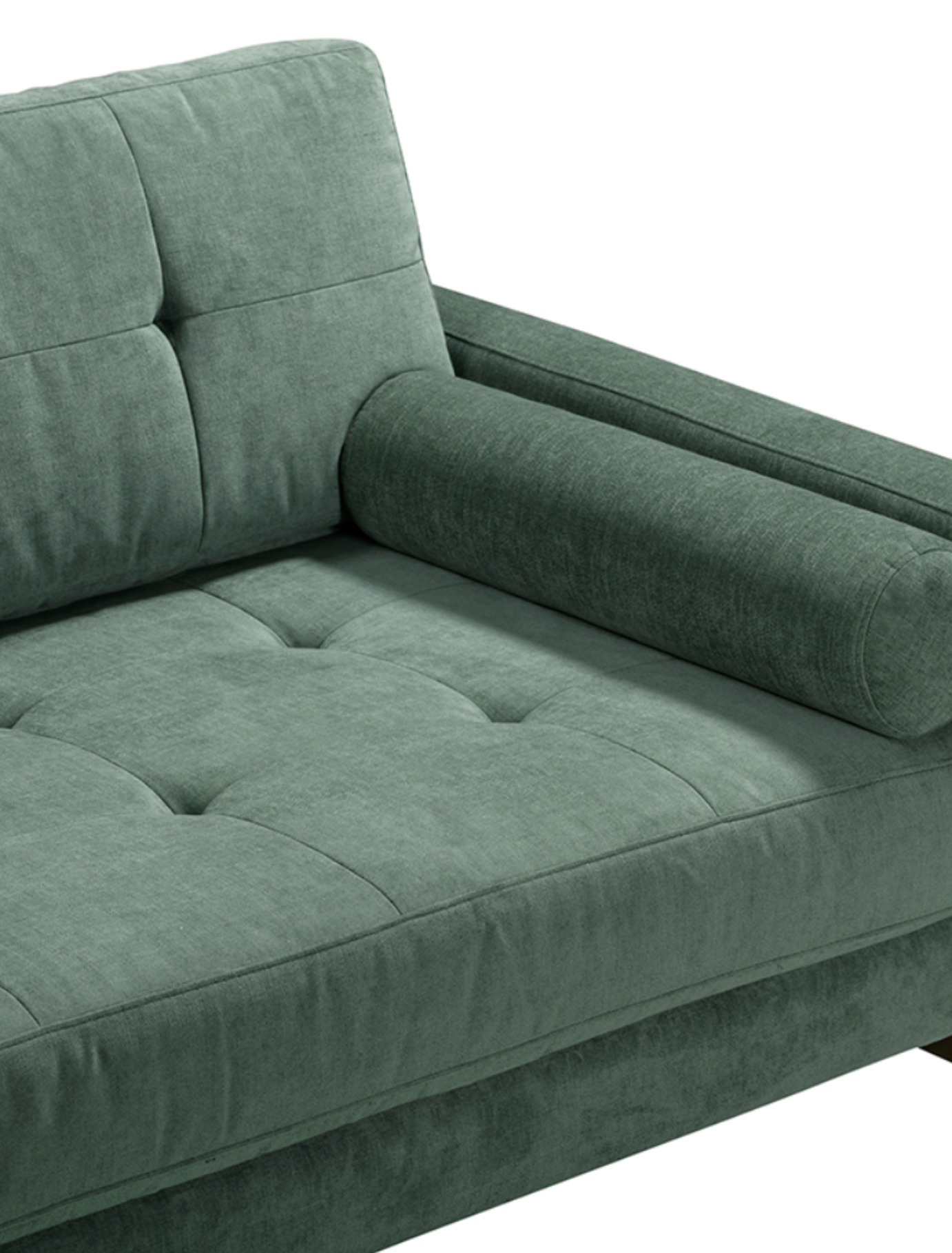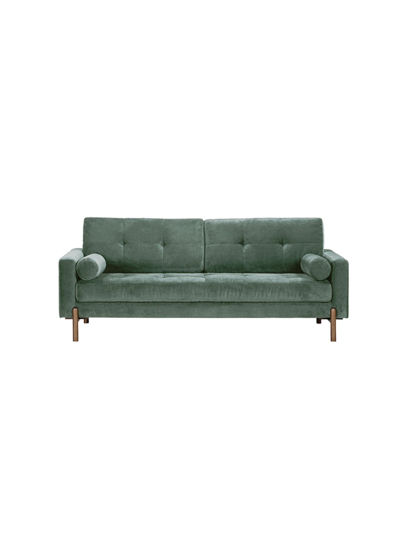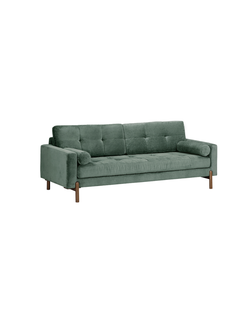 Selected for The Linea Edit, the Edward Sofa is a contemporary take on mid-century design. Upholstered in a soft, textured green fabric, it features a tufted seat and back, low arms and refined proportions that create an elegant, architectural silhouette. Solid wood legs add warmth and balance, while the two removable bolster cushions complete the look with understated detail.