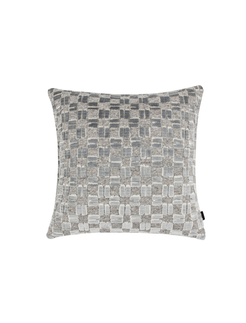 A statement cushion crafted in soft velvet with an abstract linear motif set against a contrasting virgin-wool ground, creating a quietly striking three-dimensional effect. The interplay of texture and tone gives the piece a sculptural character—refined, modern, and effortlessly elevated.