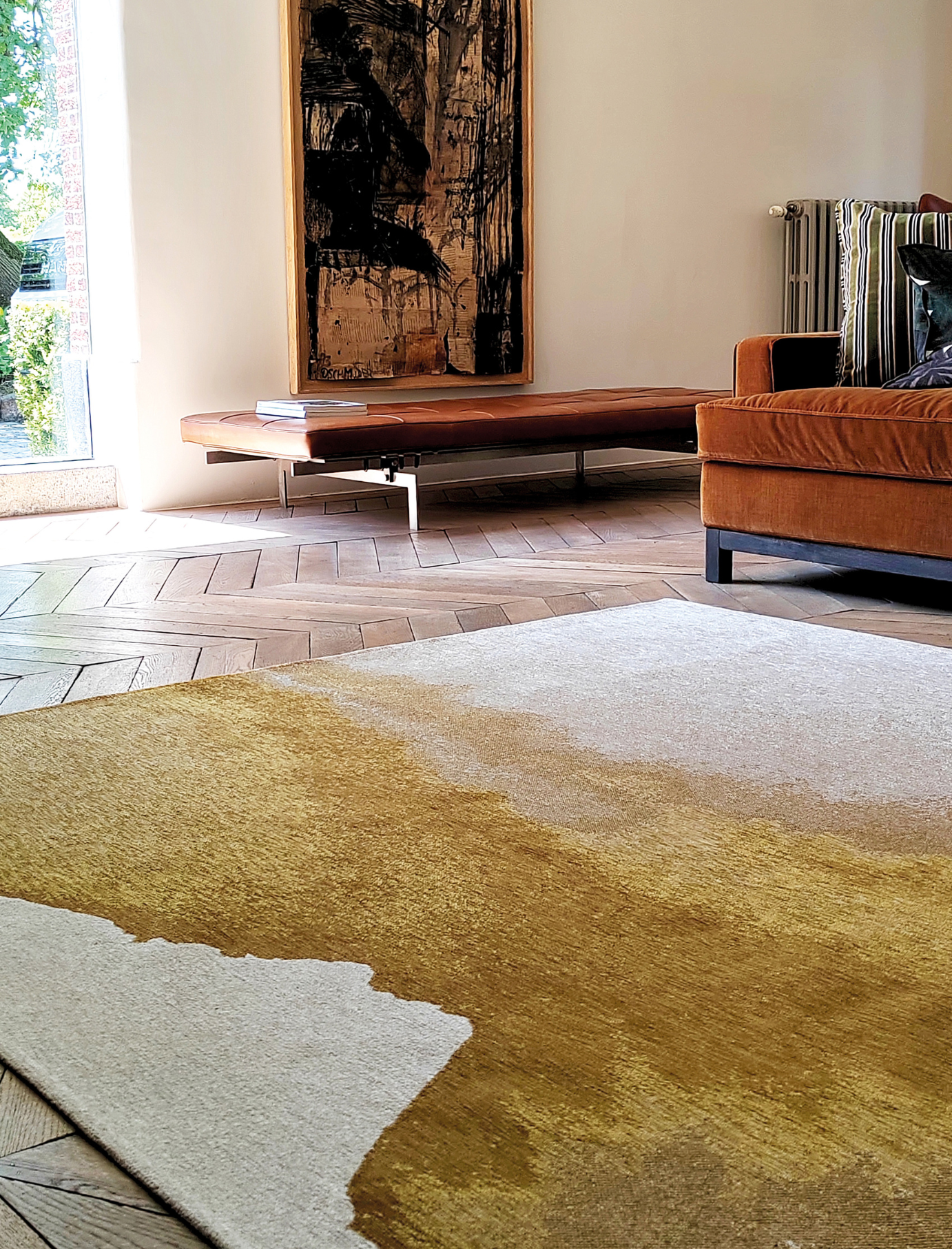 The Louis de Poortere Lagoon EcoRug draws its inspiration from spontaneous ink-blot forms and the subtle textures of sea, earth, and moss, creating a design that feels both expressive and grounded. Soft transitions of rich browns, tranquil teals, refined golds, and warm greens dance across the surface, evoking a natural connection to the world around you while adding a timeless visual rhythm to interiors.
