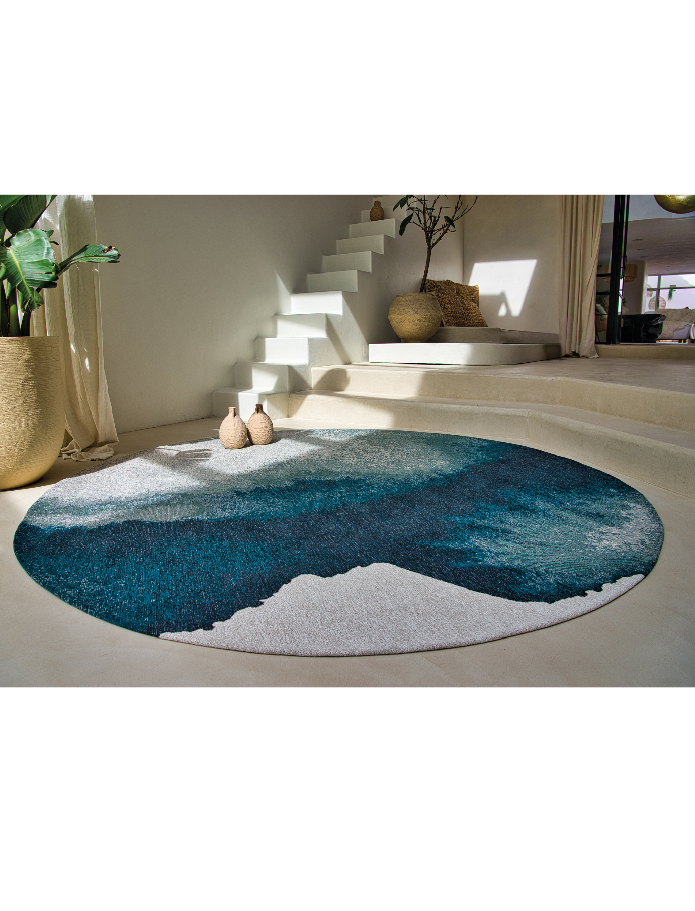 Designed for indoor and outdoor living, the Lagoon EcoRug adapts beautifully to patios, terraces, living rooms, and dining spaces, offering versatility without compromise. Available in rectangular, round, and peanut shapes, it’s a refined solution for contemporary spaces seeking both aesthetic depth and real-life functionality.