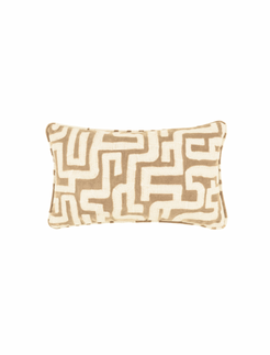 A super-smart matte cotton velvet cushion, embroidered with a deliberately primitive labyrinth design inspired by Congolese mud cloth. The Taupe colourway brings a soft, neutral grounding that adds calm texture and quiet sophistication to any room. The tonal labyrinth motif appears subtle from a distance yet reveals a beautifully crafted textile story up close, balancing restraint with artisanal character.