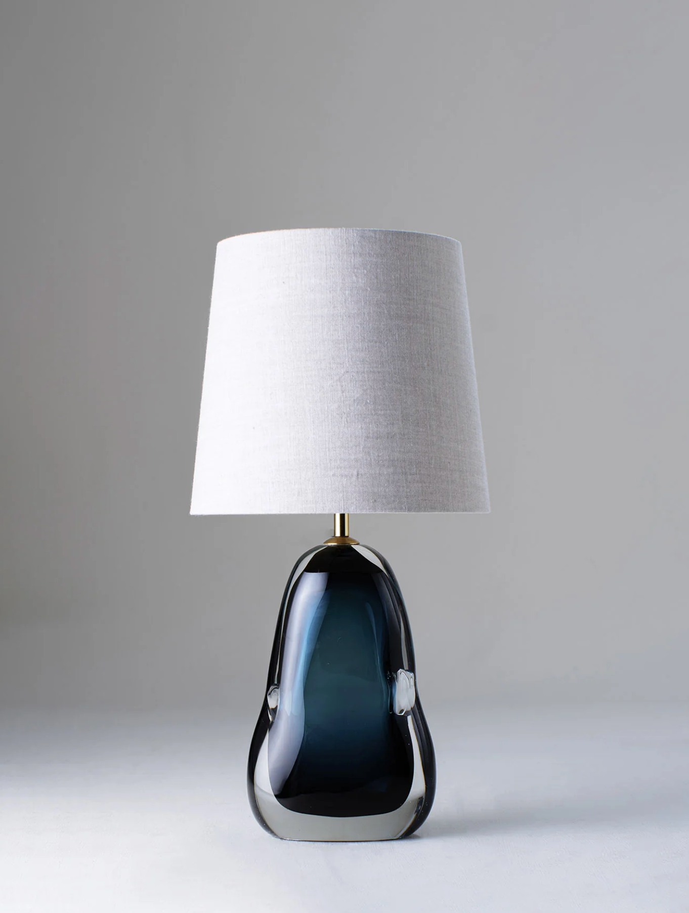 Perfume Bottle Lamp in Azure shown with 11" Bongo Slim in Natural Linen with Cream Card lining.